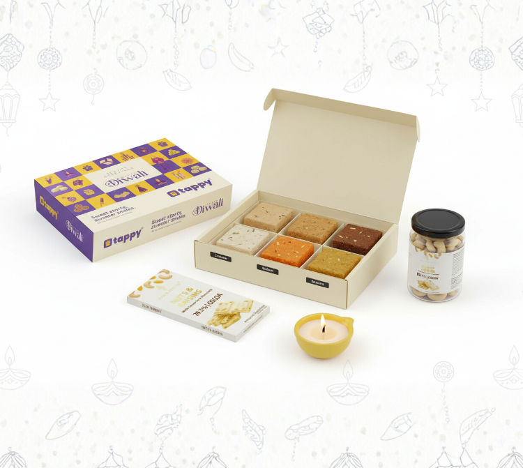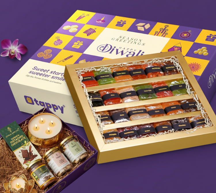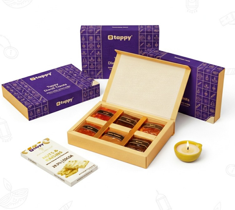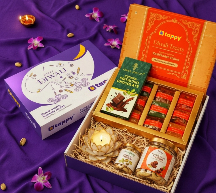 Perfect for clients, employees, and special occasions — Tappy’s Diwali hampers blend premium quality with festive charm, delivered anywhere in India.